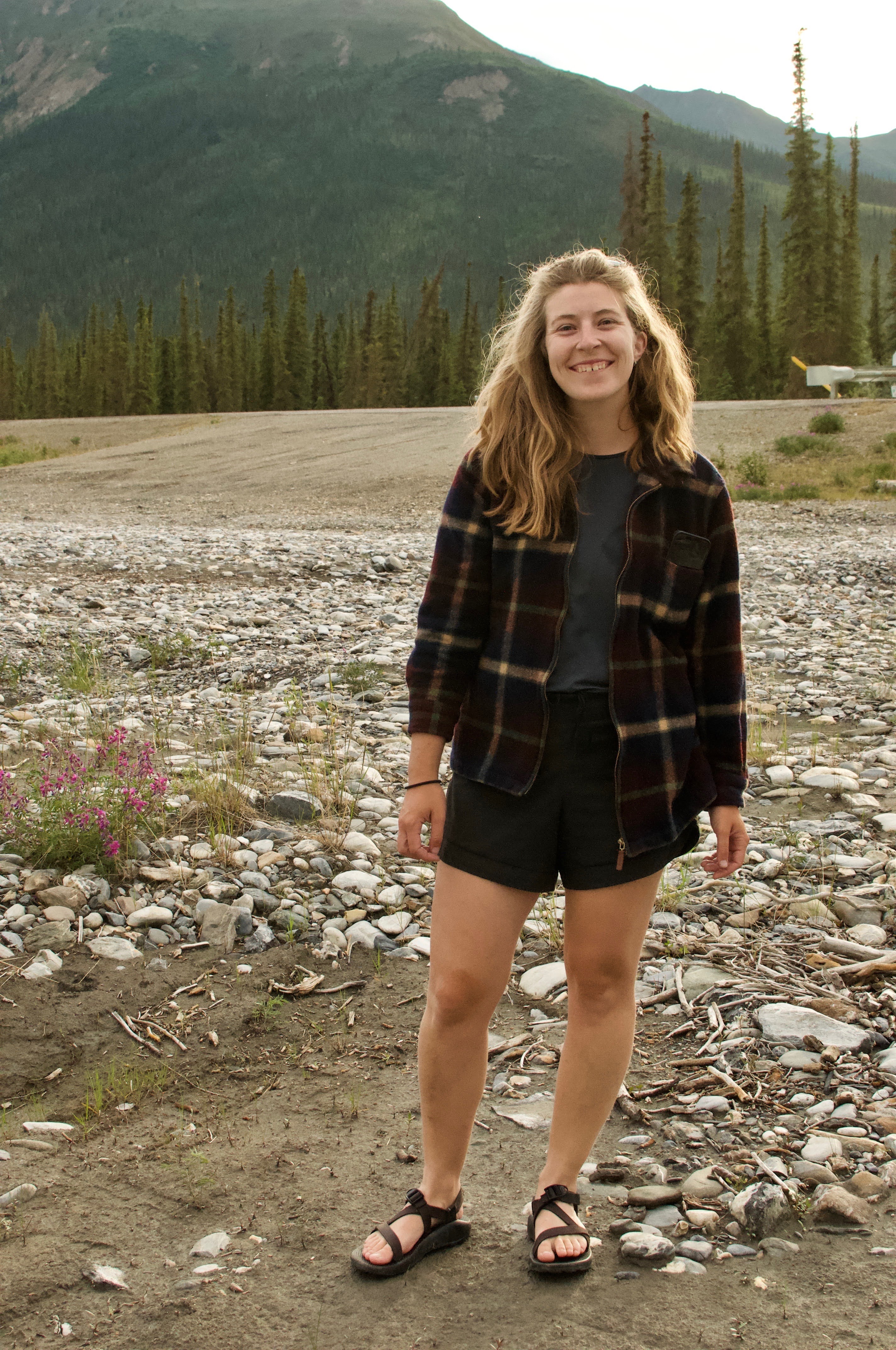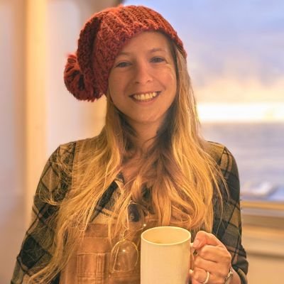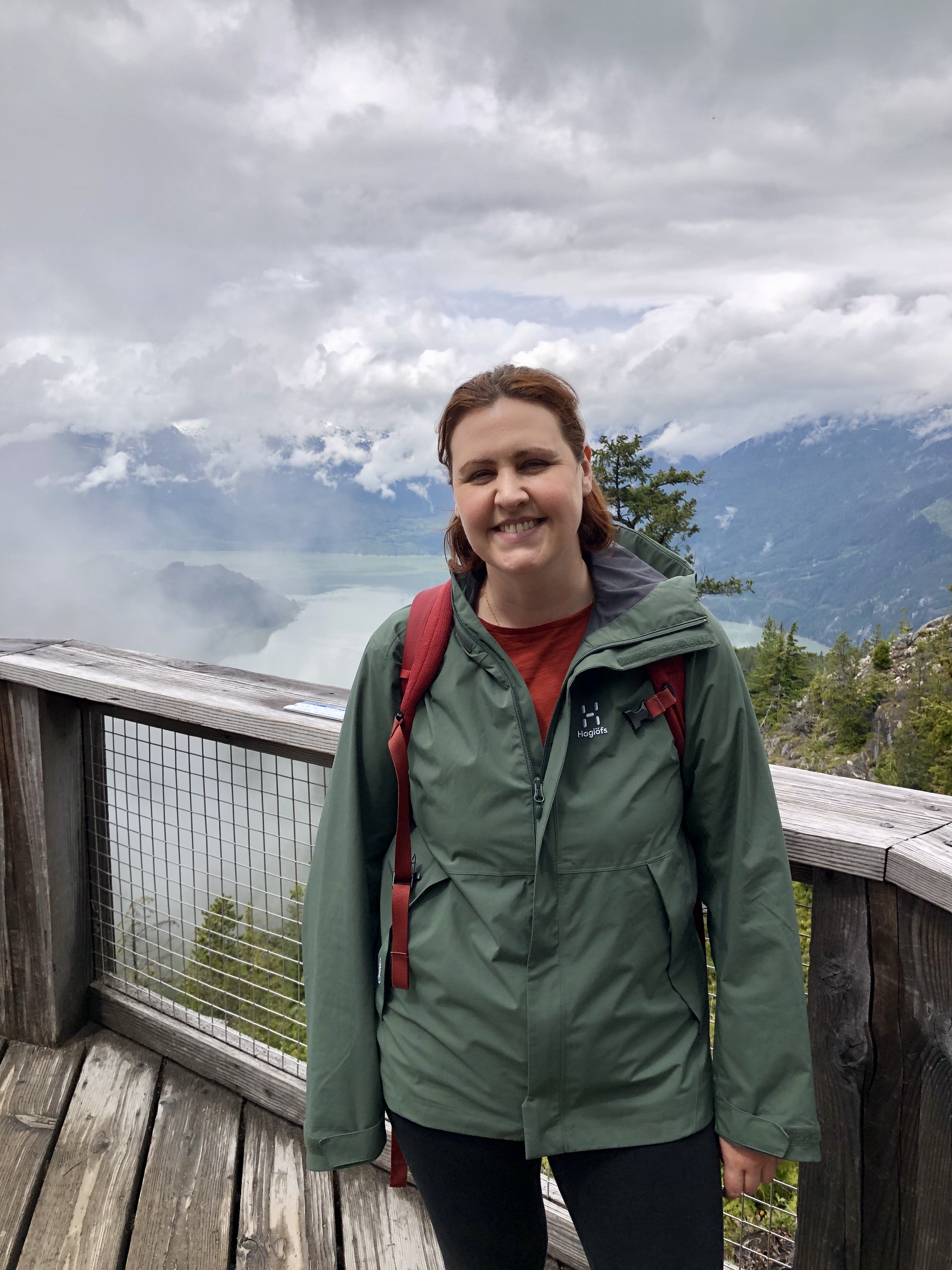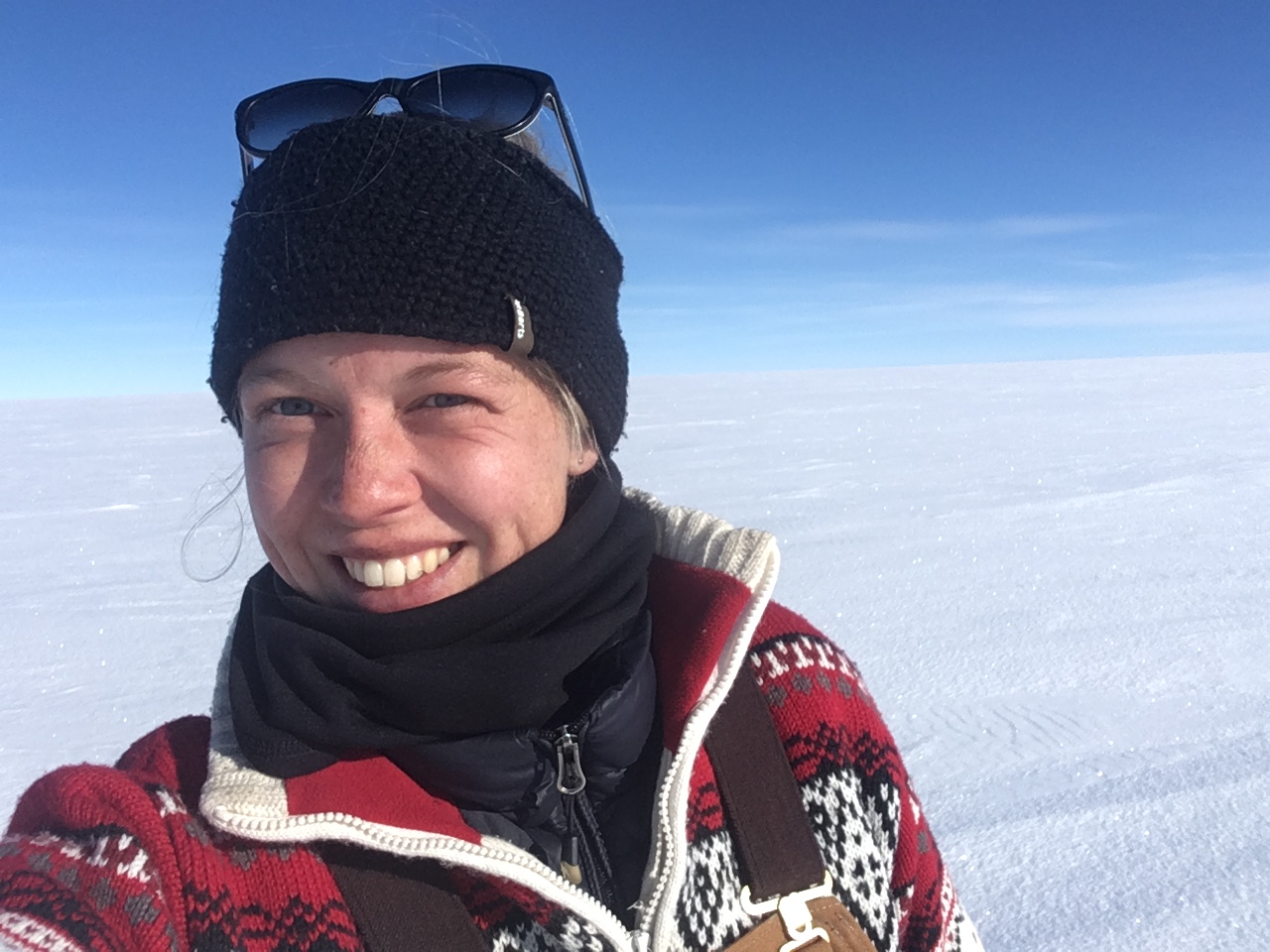 Image description: Laura Larocca, an assistant professor at Arizona State University, on a field expedition in southern Greenland, with an iceberg offshore in the Labrador Sea.