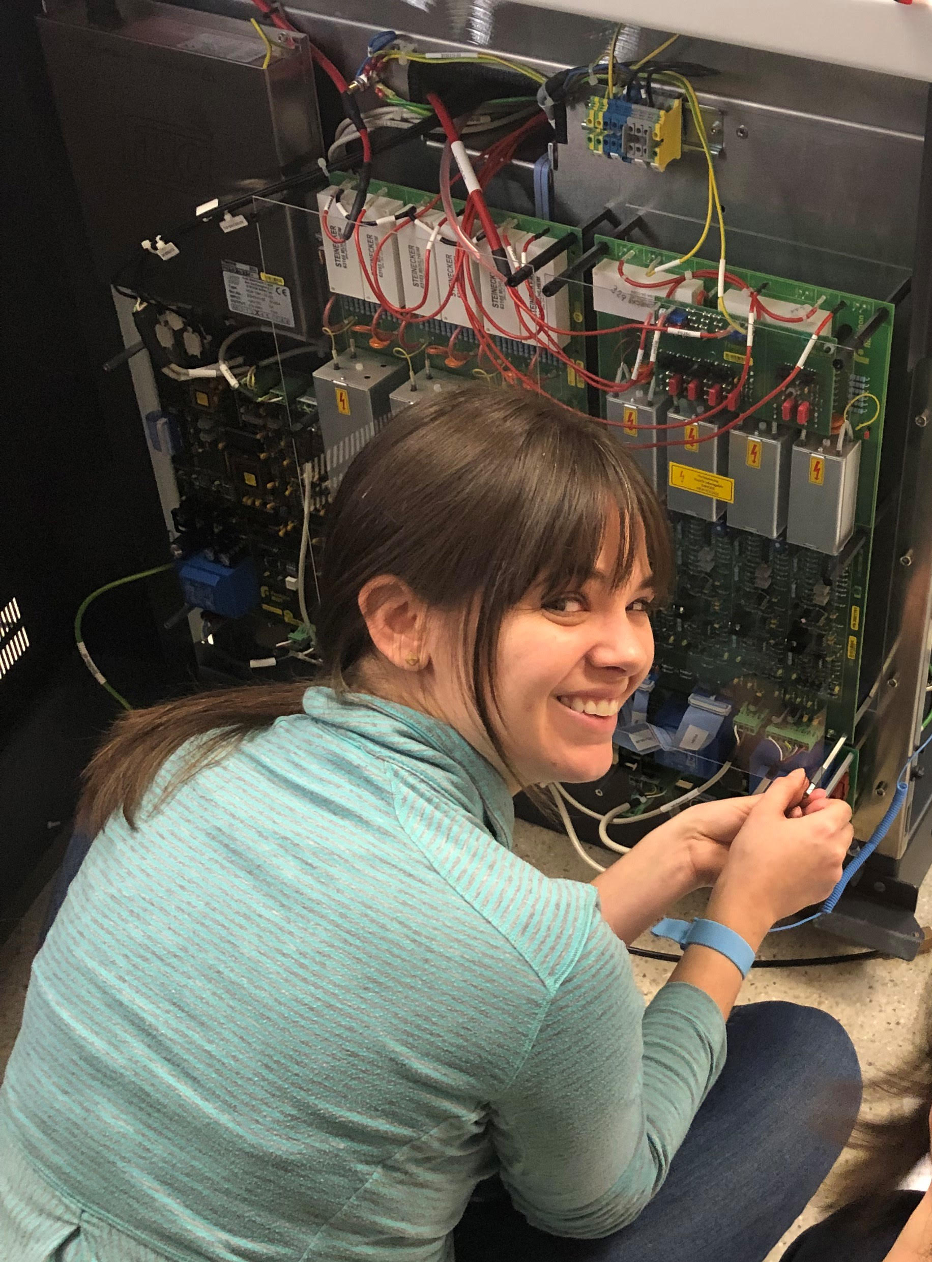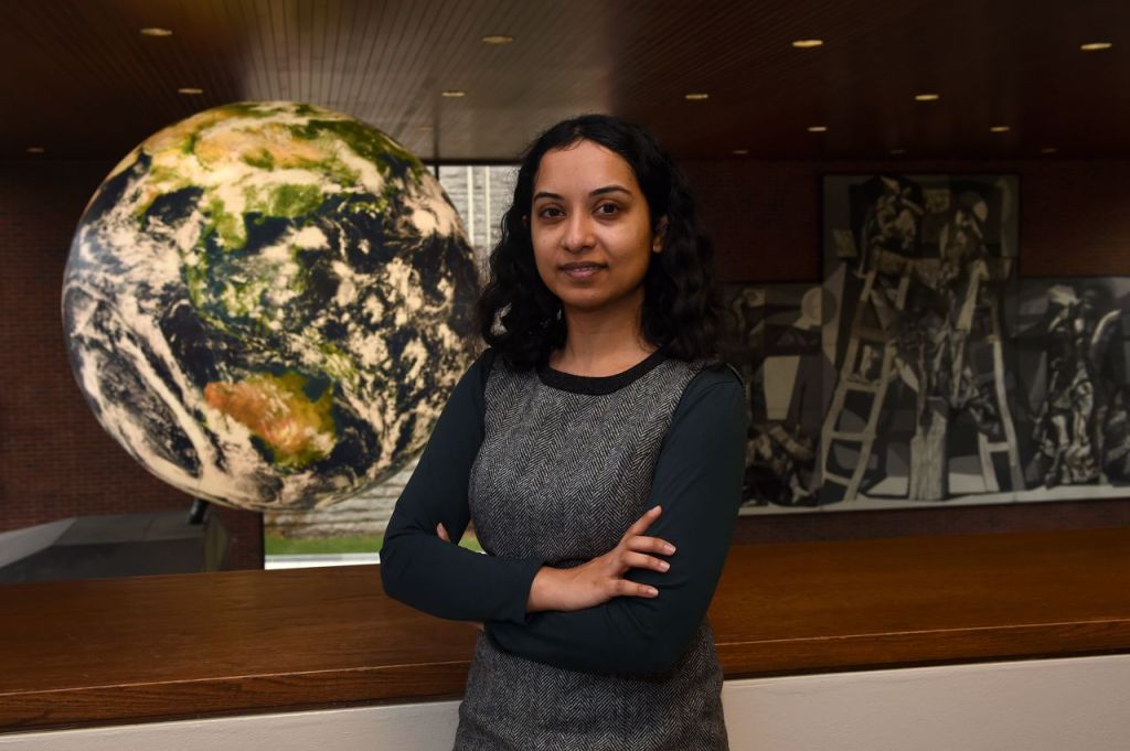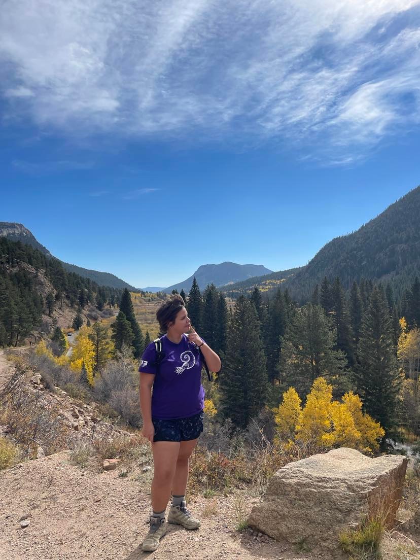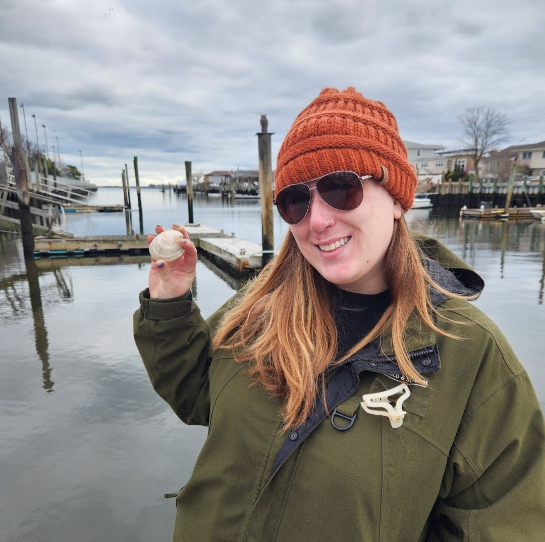Image description: Laura Larocca, an assistant professor at Arizona State University, on a field expedition in southern Greenland, with an iceberg offshore in the Labrador Sea.